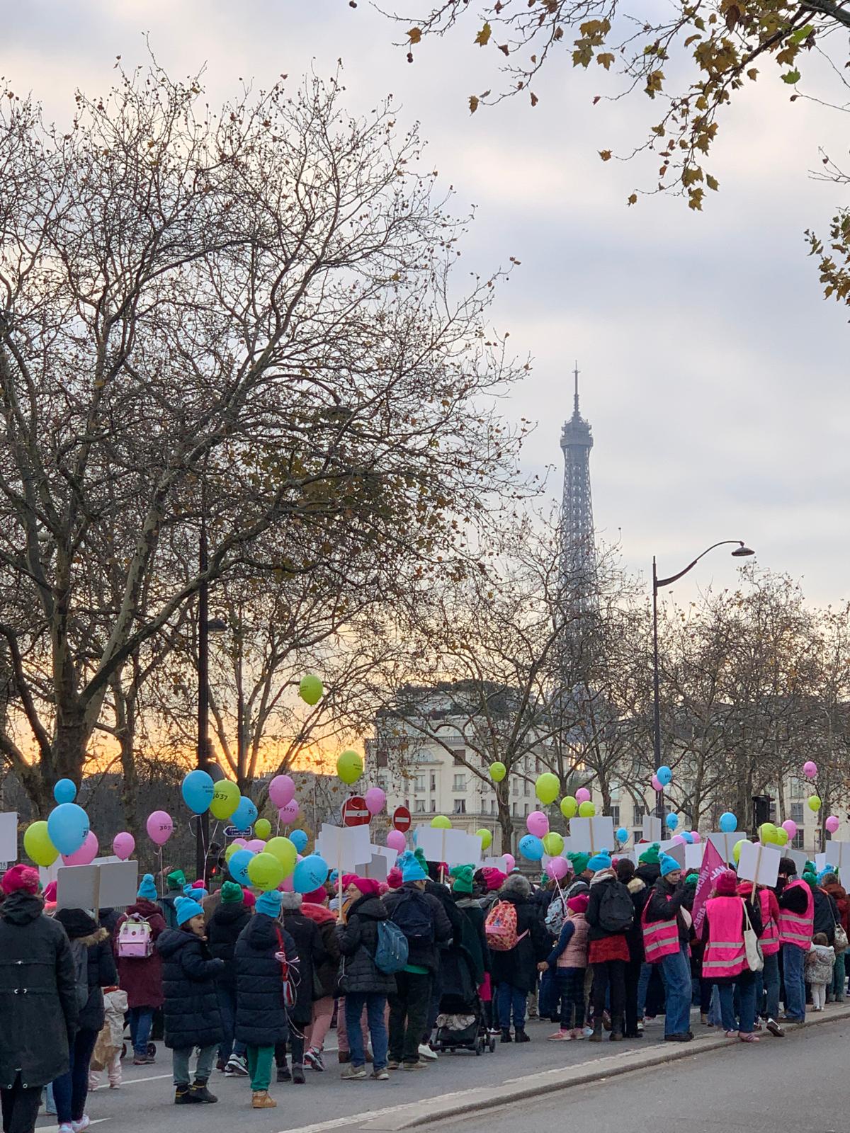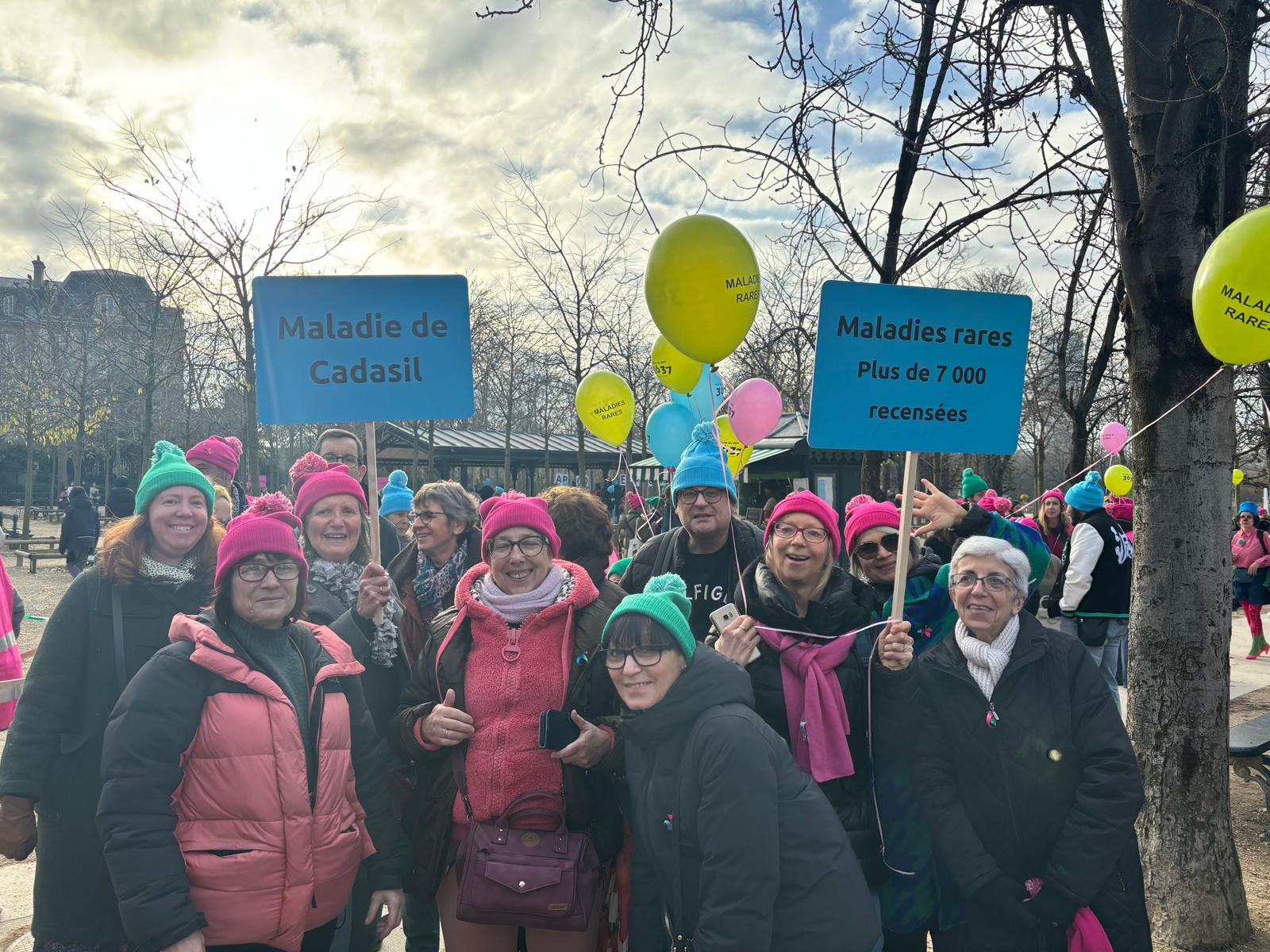Sous un beau ciel bleu, mais par un froid assez vif, nous étions un petit groupe de treize, membres du Conseil d’Administration de CADASIL France et proches, à marcher derrière le panneau de la « MALADIE de CADASIL », à l’occasion de la Marche des Maladies Rares organisée par l’AMR dans le cadre du téléthon. Nous avons pu profiter de très belles vues sur les monuments parisiens, en musique, parmi un nombre impressionnant de marcheurs portant des pancartes avec les noms de nombreuses maladies rares, et avec les nouvelles couleurs des maladies rares au niveau international : le rose, le bleu et le vert.