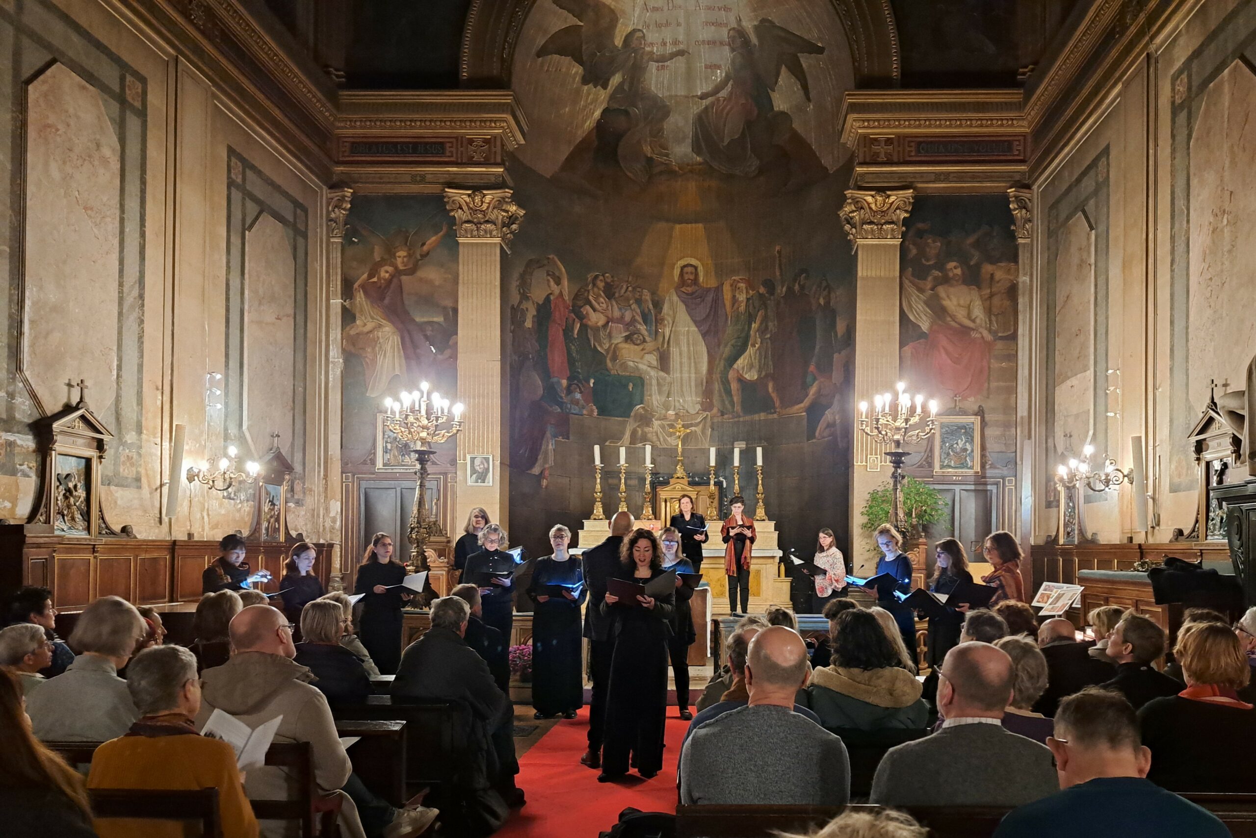 Il fallait braver la neige, la pluie et le froid ce dimanche 23 novembre… mais quelle récompense une fois arrivés à la Chapelle de l’hôpital Lariboisière : l’ensemble vocal l’Atelier de la Chambre, dirigé par Jean Sébastien Beauvais nous a fait voyager depuis Hildegard Von Bingen, jusqu’à l’époque contemporaine dans le monde du « Rêve en musique », avec un « concert en espace » remarquable ! A la fin de la prestation, les choristes et le chef de choeur ont été copieusement applaudis.