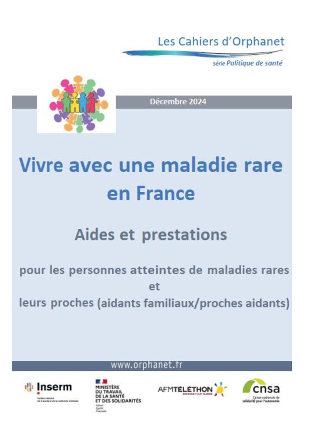 Les Cahiers d’Orphanet, document complet : Vivre avec une maladie rare en France – Aides et prestations. Edition Décembre 2024, 124 pages